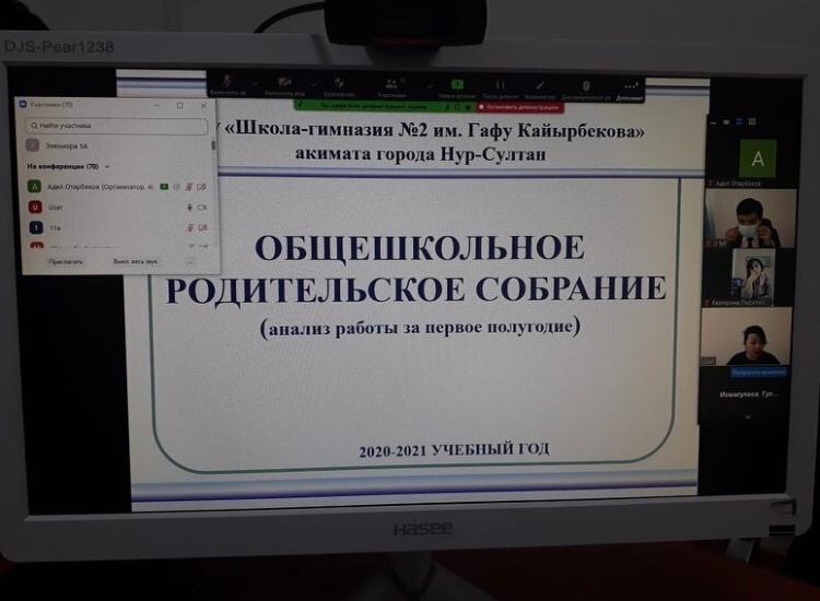 Ғафу Қайырбеков атындағы мектеп-гимназиясының директоры Нугуманов Сырым Ботаханұлы "Қамқоршылық кеңесі" алдында 2020-2021 оқу жылындағы 1-жартыжылдығының есебін берді. Мектеп-гимназия ұжымының оқу, тәрбие және ғылыми-әдістемелік жұмыстарына тоқталып өтті. Есеп беру барысында мектеп-гимназиясының бөлінген қаржылары да аталып өтті. Кездесу онлайн және оффлайн форматында бір мезгілде өткізілді.